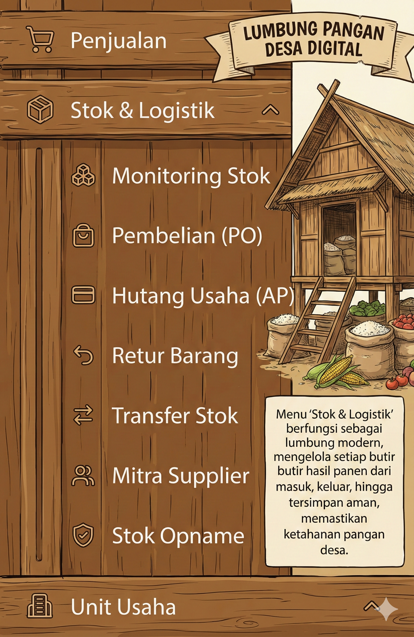 Modernisasi: Lumbung masa kini bukan hanya gudang gabah, melainkan sistem Cold Storage bertenaga surya dan manajemen stok berbasis data. Ini memastikan desa tetap memiliki cadangan ekonomi saat harga pasar global bergejolak.
